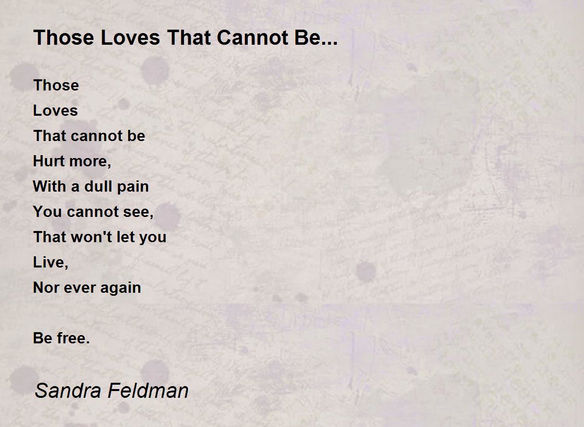 Those Loves That cannot be Hurt more, With a dull pain You cannot see, That won't let you Live, Nor ever again Be free.