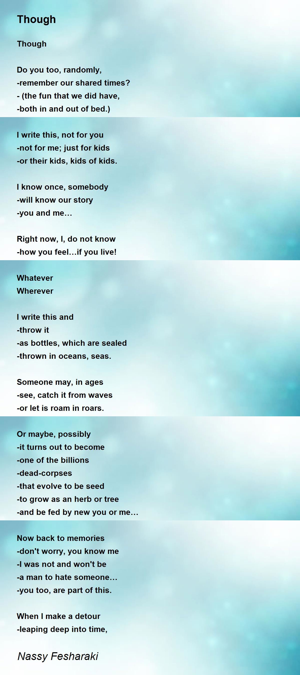 A very romantic and lovely poem, filled with vivid nostalgia and golden memories. That a man can write this amazes me. Great work!