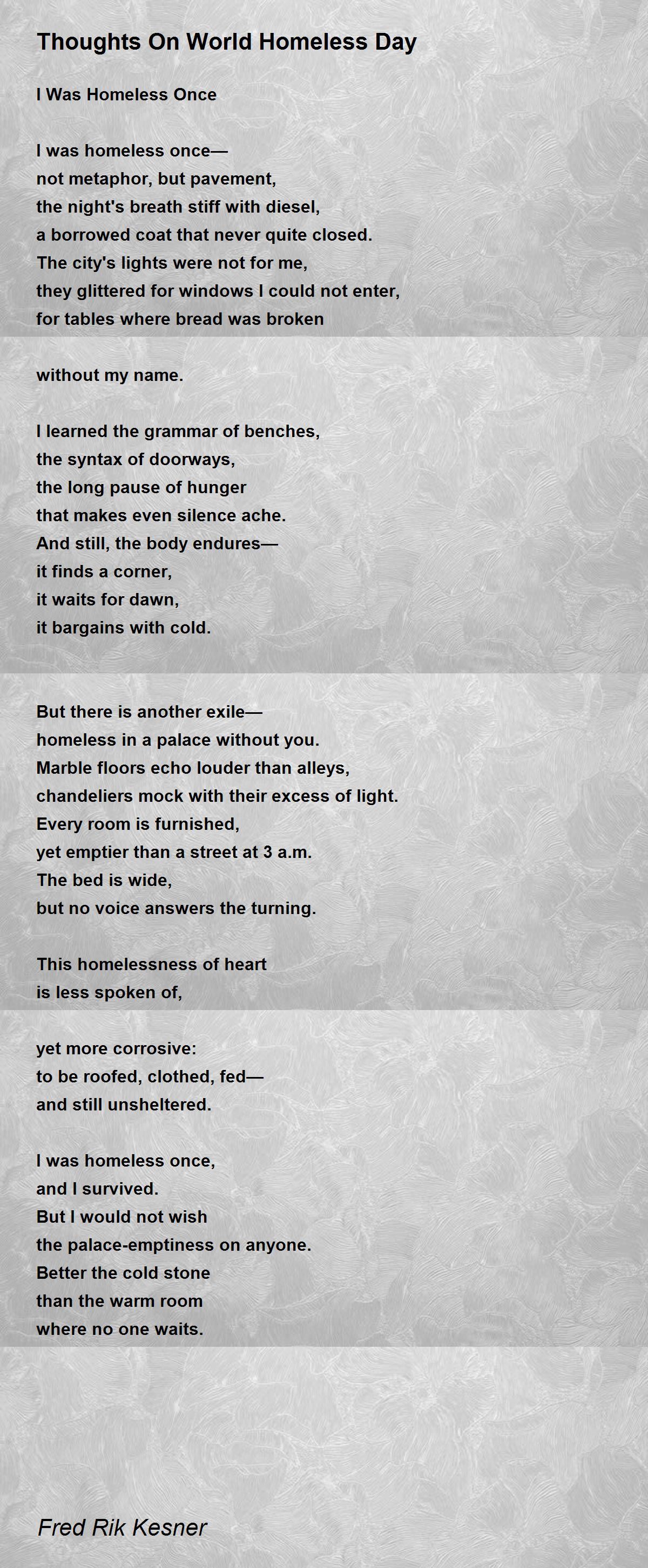 I Was Homeless Once