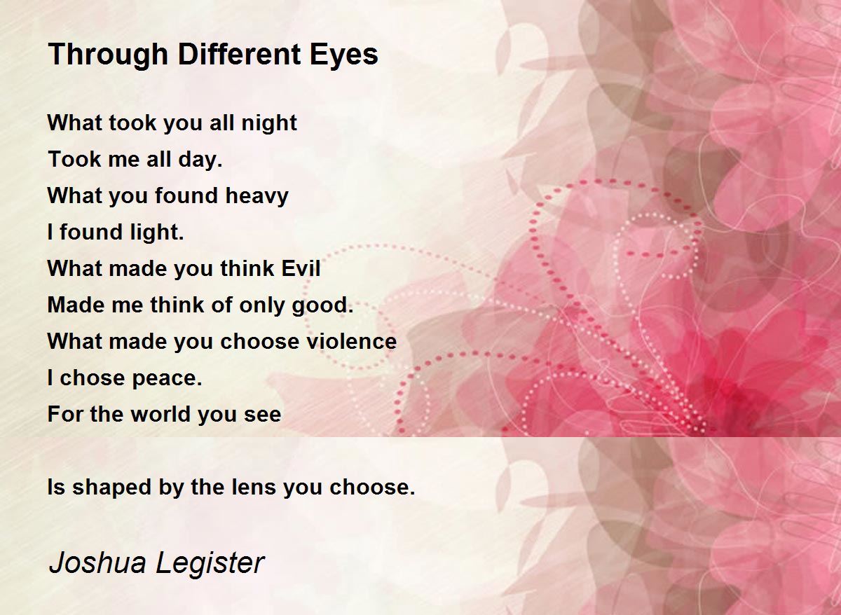 Congrats on POD, Joshua. I love this poem. Especially the lines: For the world you see is shaped by the lens you choose.