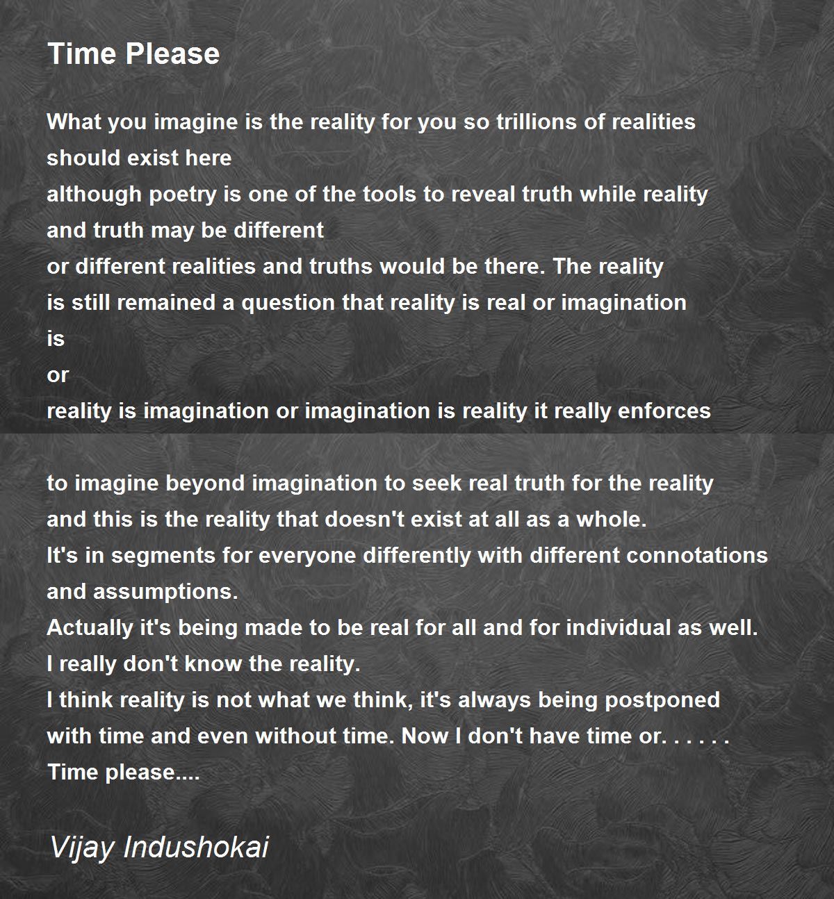 I think reality is not what we think, it's always being postponed with time and even without time. Now I don't have time or......