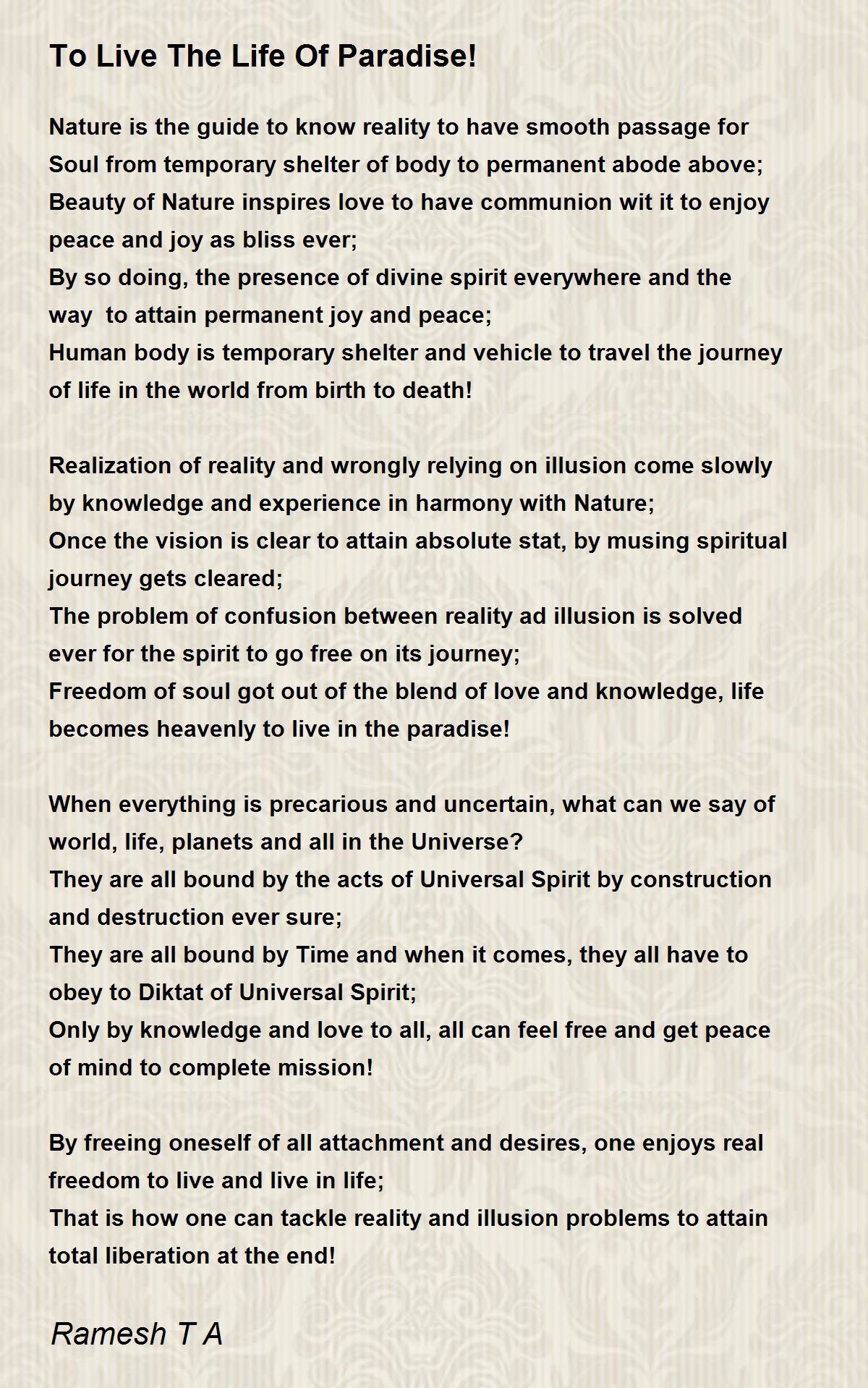 Freedom of soul got out of the blend of love and knowledge, life becomes heavenly to live in the paradise!