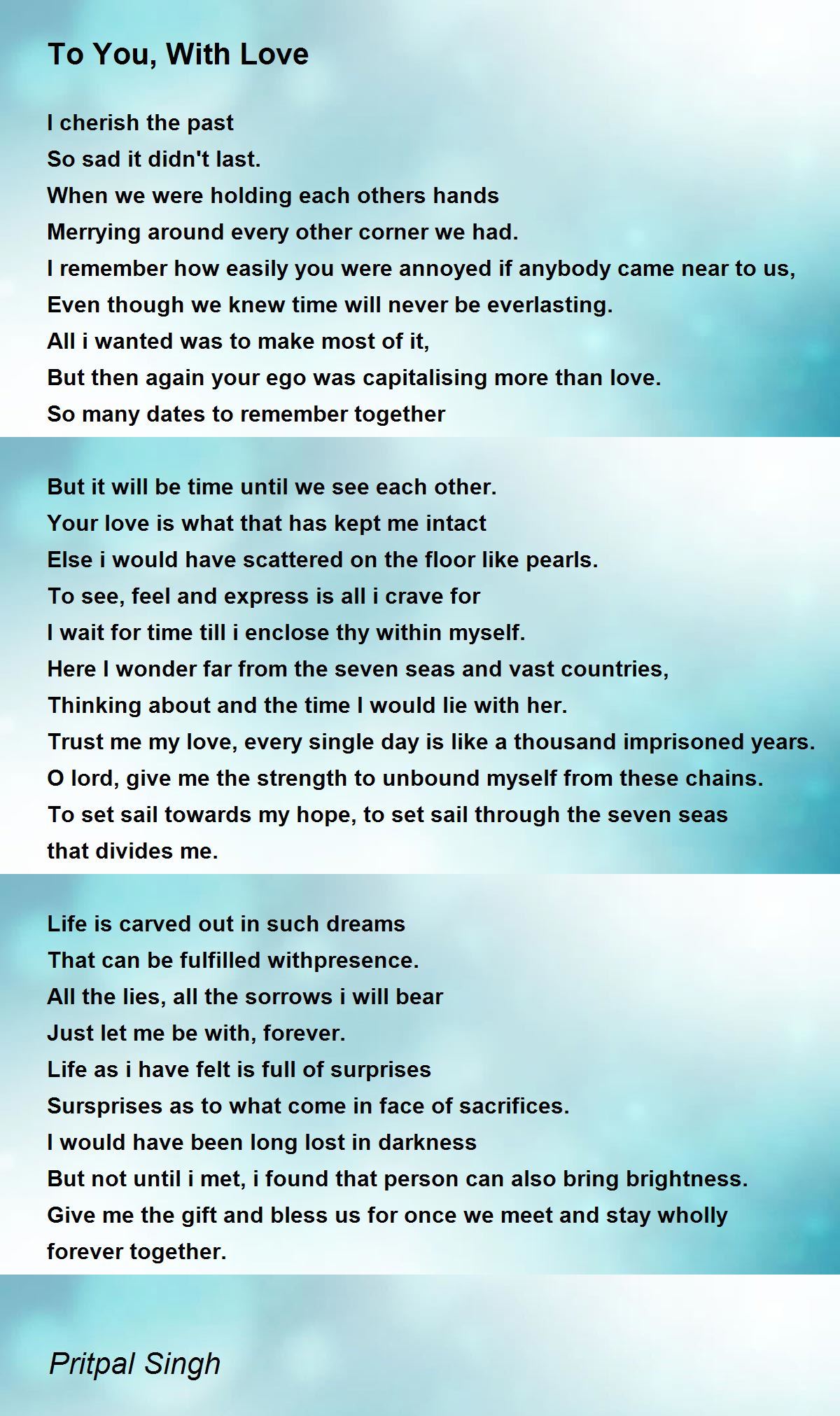 Give me the gift and bless us for once we meet and stay wholly forever together.