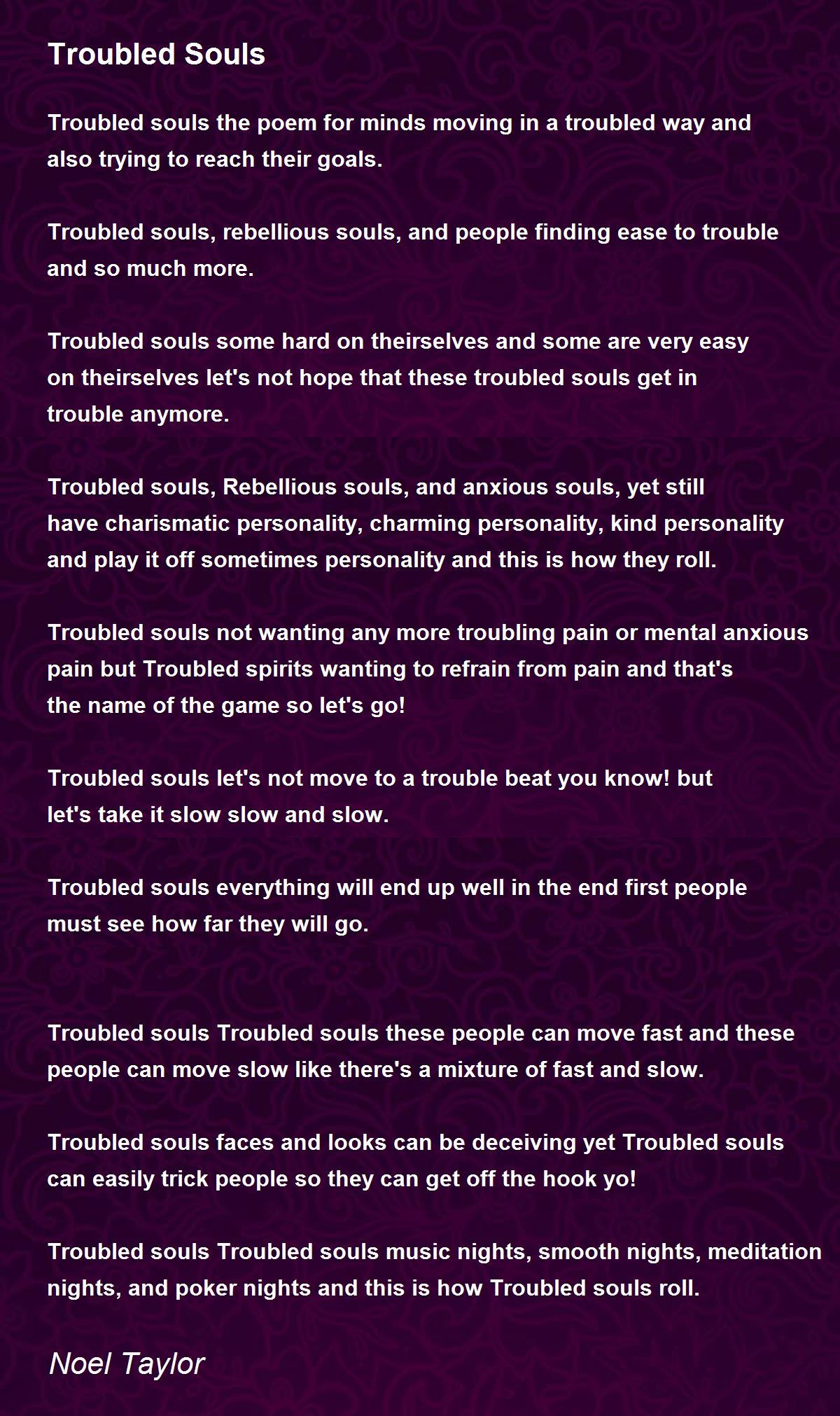 Troubled souls the poem for minds moving in a troubled way and also trying to reach their goals.