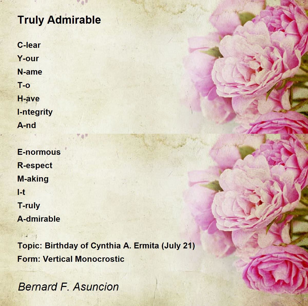 Topic: Birthday of Cynthia A. Ermita (July 21)