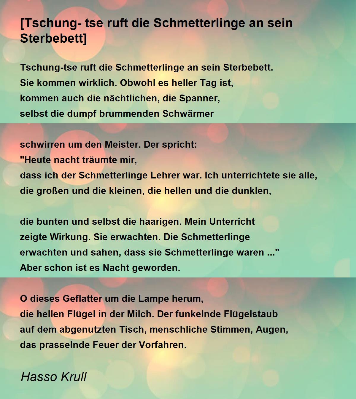 Tschung-tse ruft die Schmetterlinge an sein Sterbebett.