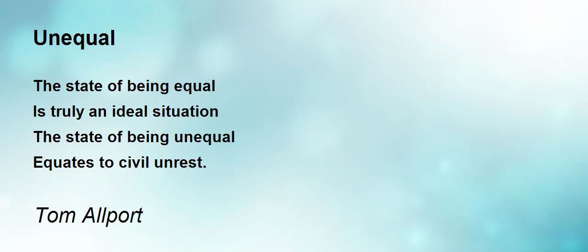 The state of being unequal Equates to civil unrest...This poem is very amazingly and wonderfully penned. Thank you very much for sharing this.
