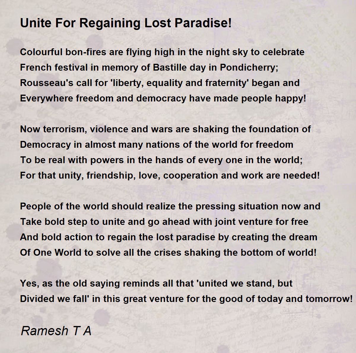 Divided we fall' in this great venture for the good of today and tomorrow!