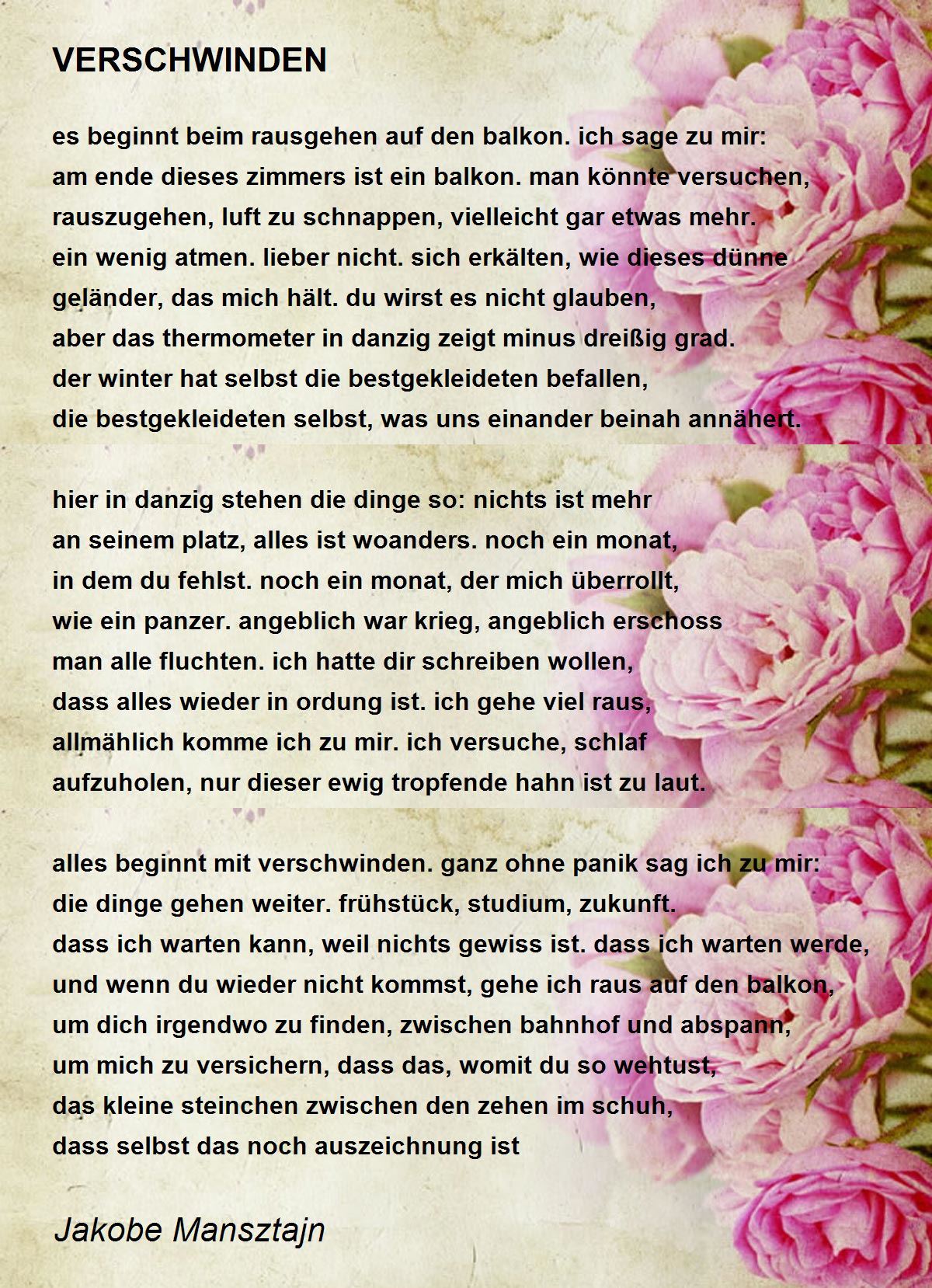 alles beginnt mit verschwinden. ganz ohne panik sag ich zu mir: