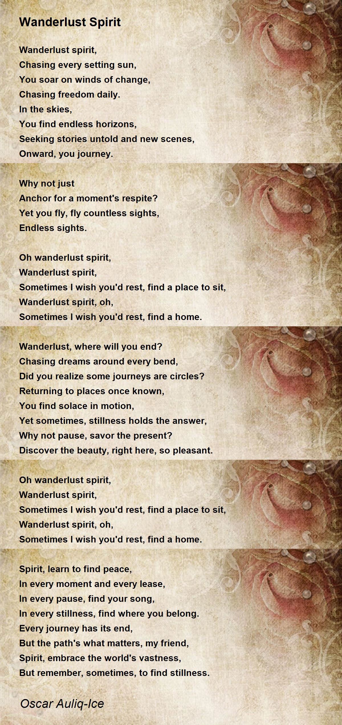 Oh wanderlust spirit,