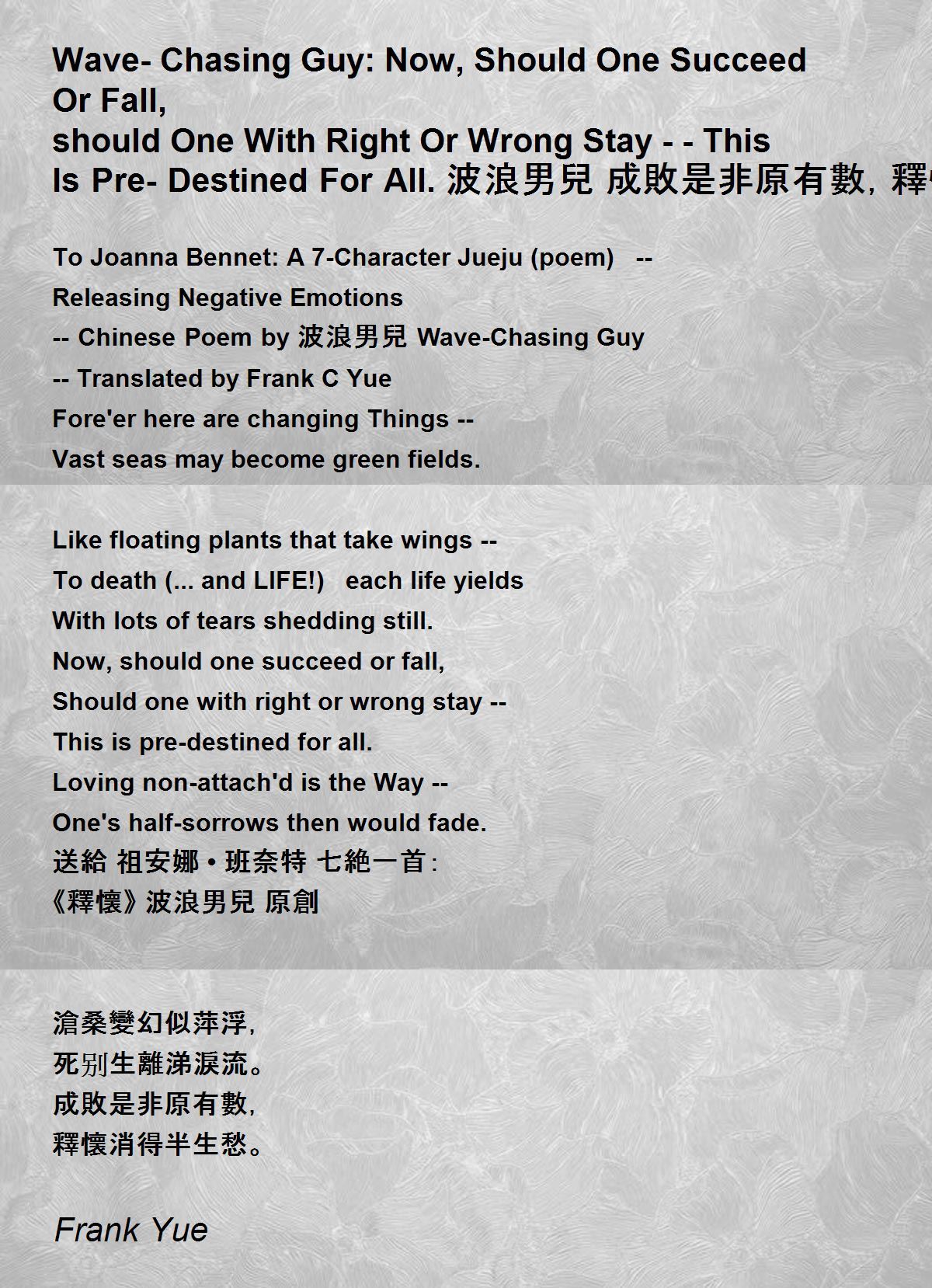 -- Chinese Poem by 波浪男兒 Wave-Chasing Guy