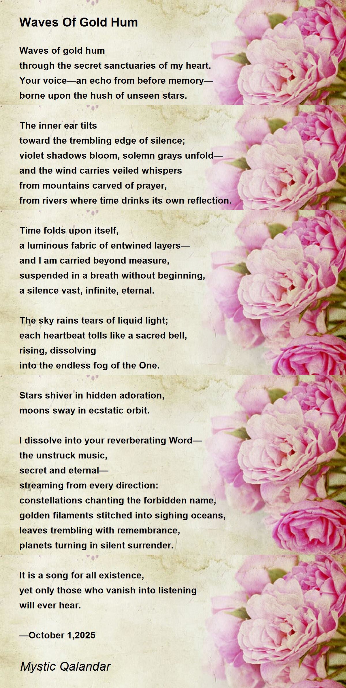 borne upon the hush of unseen stars.