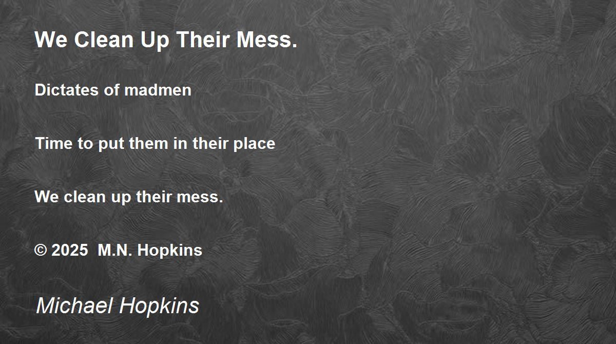 Note: I wrote this poem a few days ago in the haiku style of poetry a few days ago and published it for the first time today, the 10th of November,2025. The WE freak intellectually and emotionally challenged with their unpractical and doomed to failure ideas have created many disasters in human community and it is about time for people to realized that we are the ones who pay their bills and clean up the messes after their programs and agendas fail.
