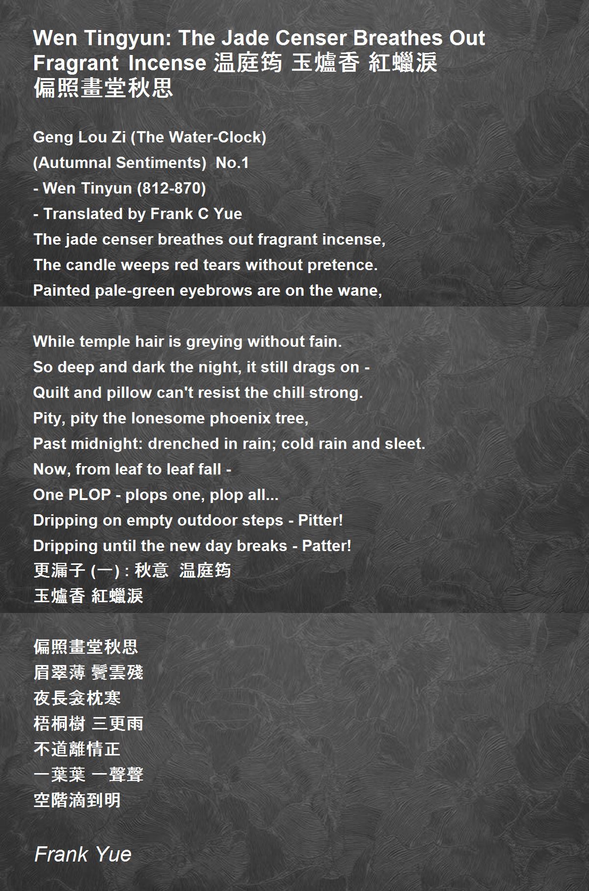 - Translated by Frank C Yue