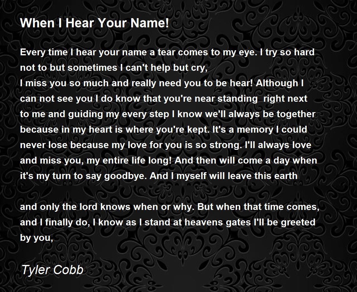 Every time I hear your name a tear comes to my eye. I try so hard not to but sometimes I can't help but cry,