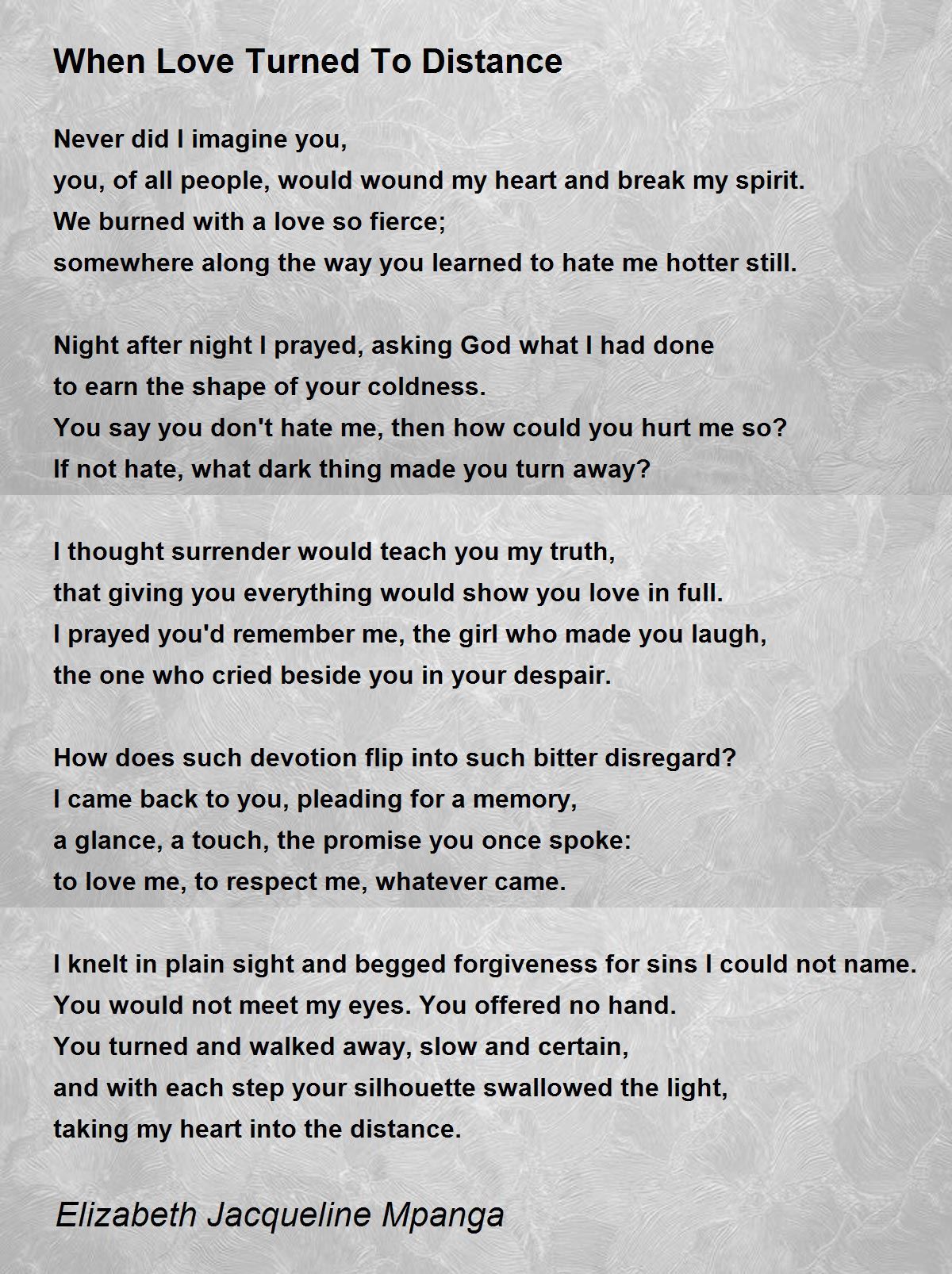 'Many a night I prayed asking God to show me what I did wrong to make you hate me, You say you don’t hate me then how then would you hurt me so? If not hate then what would have made you spite me this much? ' A very relatable situation and a nice write... Thanks for sharing Elizabeth..