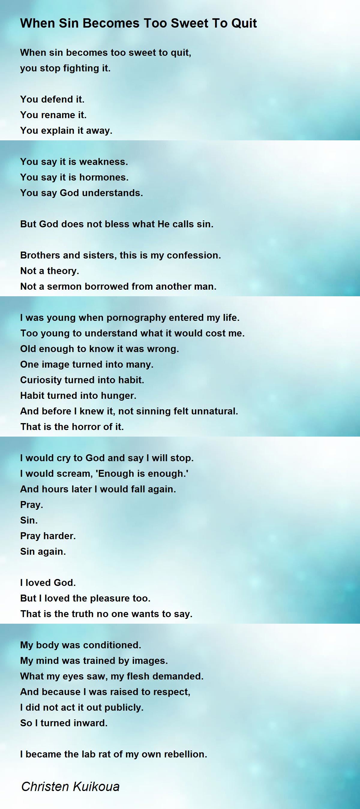 When Sin Becomes Too Sweet To Quit Poem by Christen Kuikoua