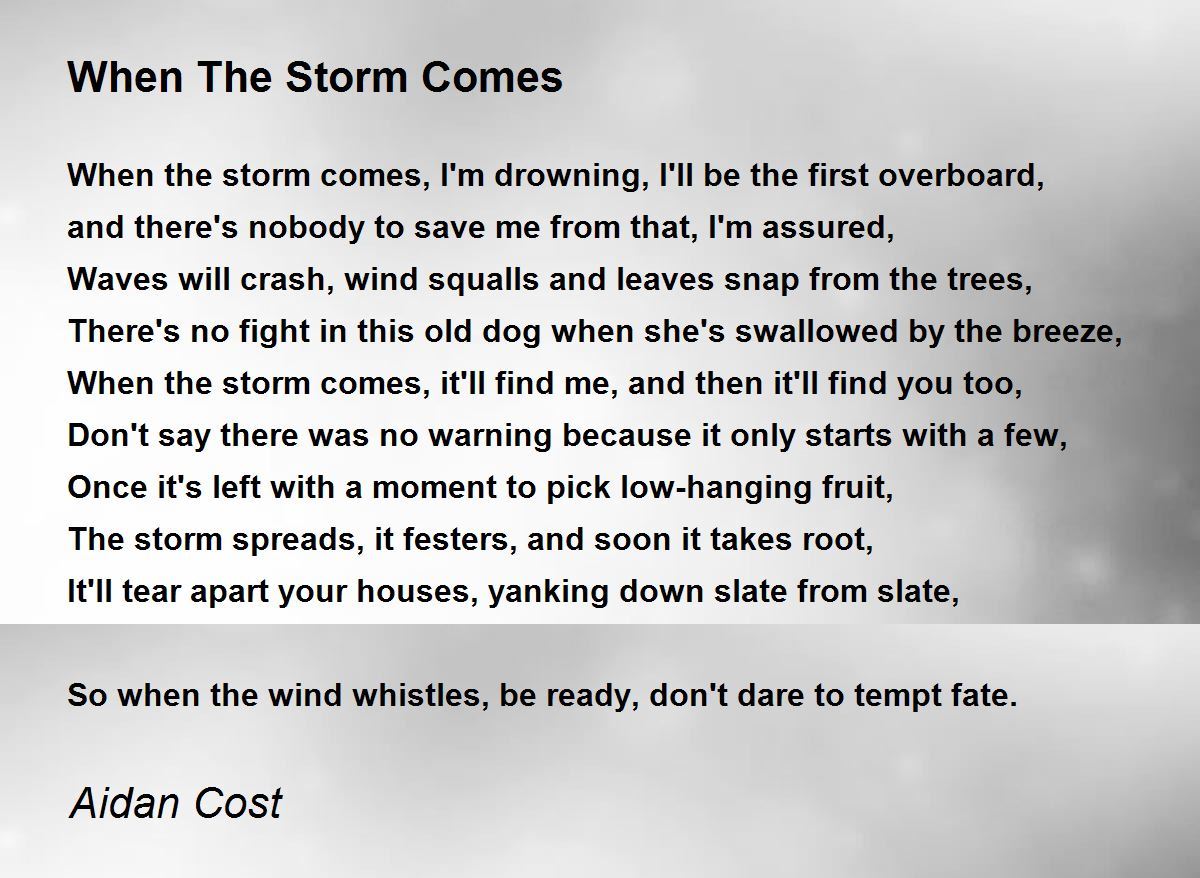 When the storm comes, I'm drowning, I'll be the first overboard,