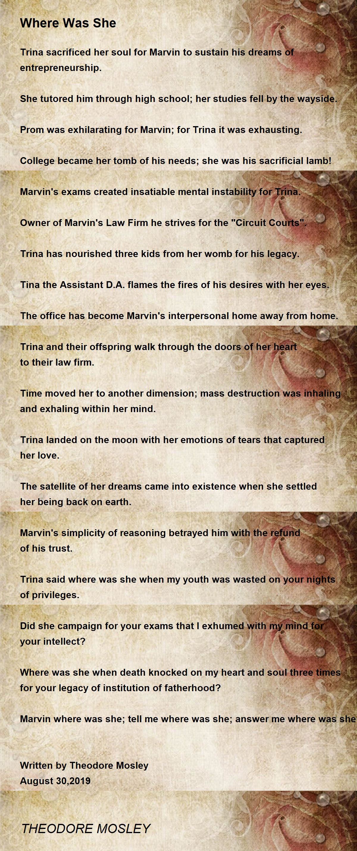 Where was she when death knocked on my heart and soul three times for your legacy of institution of fatherhood?