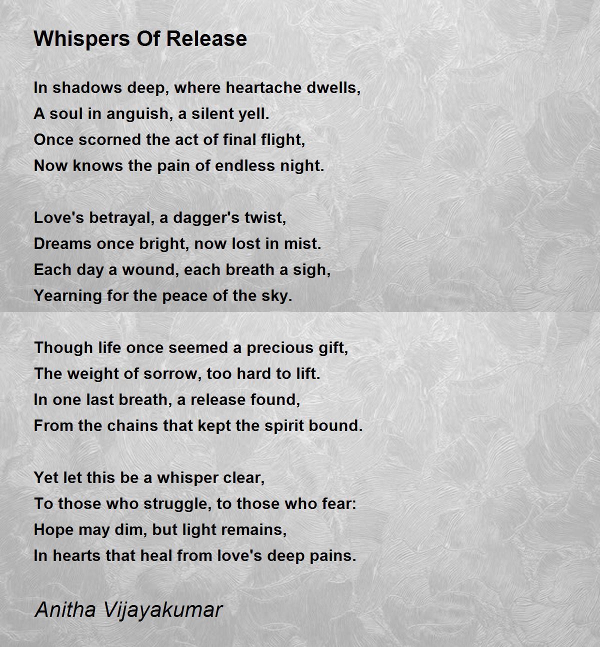 Interesting poem. " a whisper clear, / To those who struggle"…