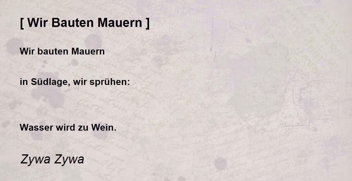 Wir bauten Mauern in Südlage, wir sprühen: Wasser wird zu Wein.