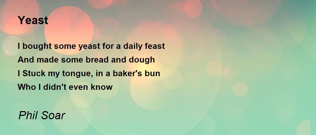 I bought some yeast for a daily feast And made some bread and dough I Stuck my tongue, in a baker's bun Who I didn't even know